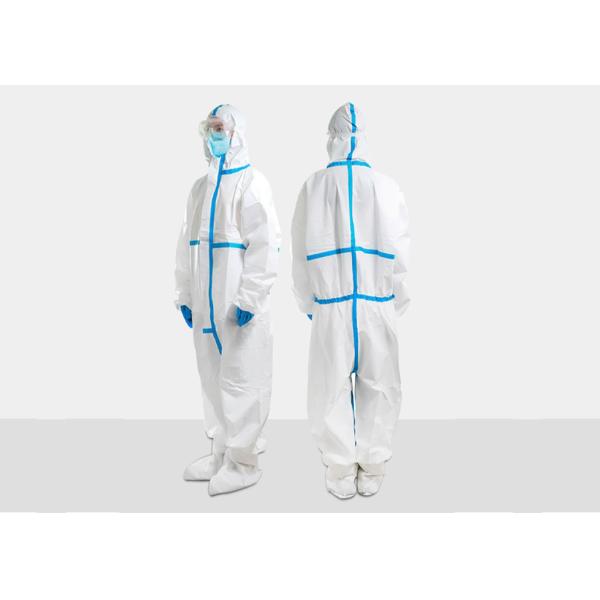 The cover all is made from a high gram-weight composite nonwoven material, through cutting and sewing. Self-adhesive zipper from the front to chin placket protection. Seams are covered with special heat sealing tape for protective clothing. Helps isolate virus and protect against hazardous dusts and liquid, blood splashes.